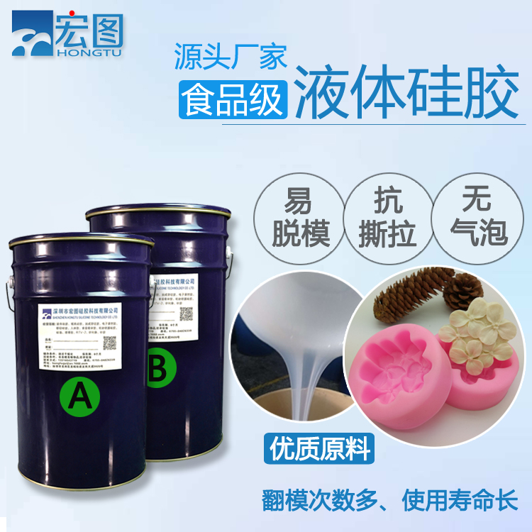 食品級(jí)液體硅膠可廣泛應(yīng)用于高檔食品的模具復(fù)模,巧克力模具、糖果模具、蛋糕模具,以及高檔仿真食材等食品級(jí)硅膠模具制作也適應(yīng)于食品工藝擺飾件、食品糖藝模型、硅膠奶嘴和耐高溫烘焙的硅橡膠制品應(yīng)用等。