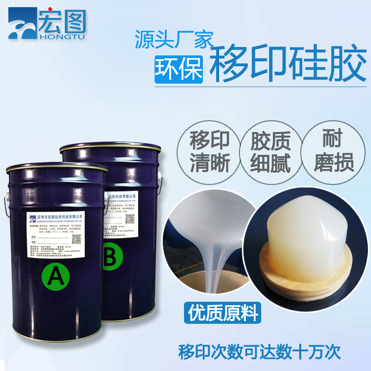 環(huán)保移印硅膠是一種雙組份加成型硅橡膠,分別是以A、B組分包裝的具有流動(dòng)性的液體硅膠,可制備優(yōu)異的移印彈性材料。膠質(zhì)細(xì)膩,無(wú)雜質(zhì),回彈力好,移印圖案清晰,是制作膠頭的首選環(huán)保材料!